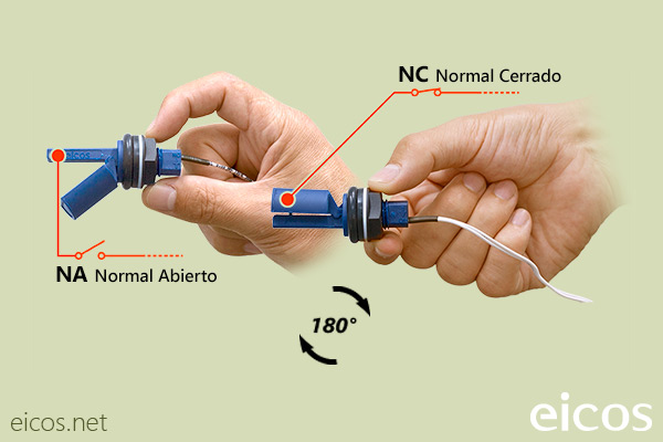 El movimiento del flotador magnético abre/cierra un contacto eléctrico.